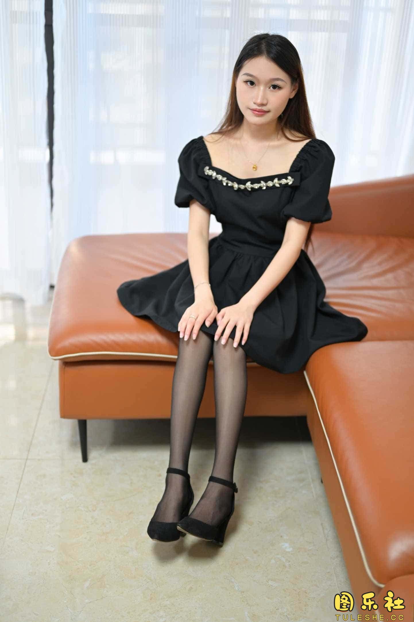 连衣裙、黑丝、高跟鞋