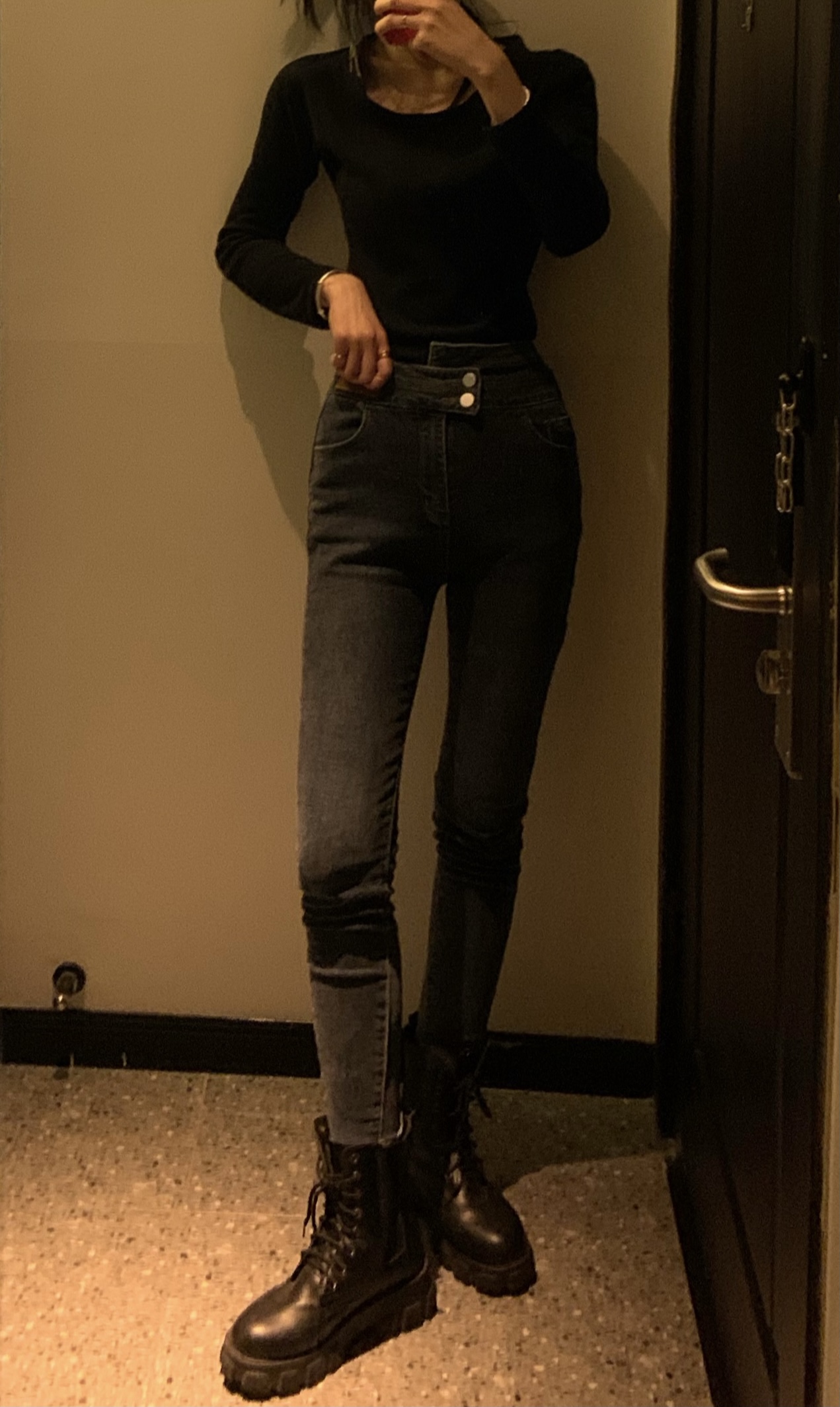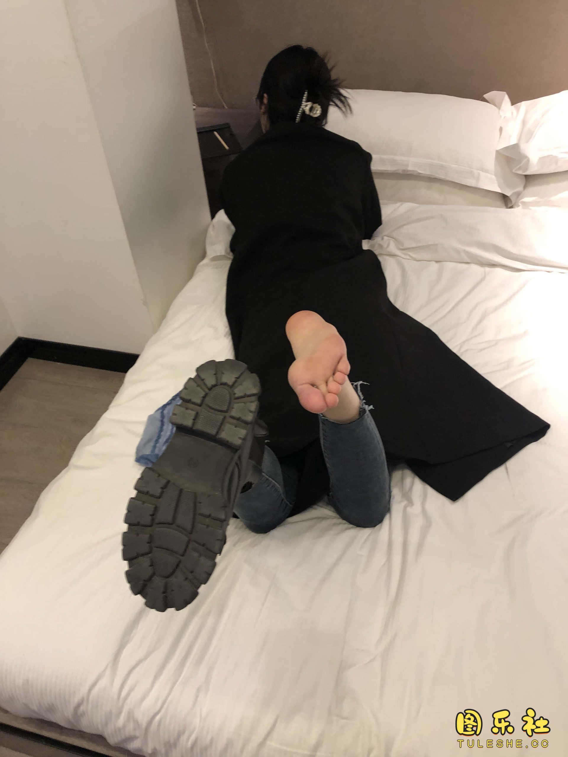 [本足摄影]模特女神 牛仔裤黑靴裸足