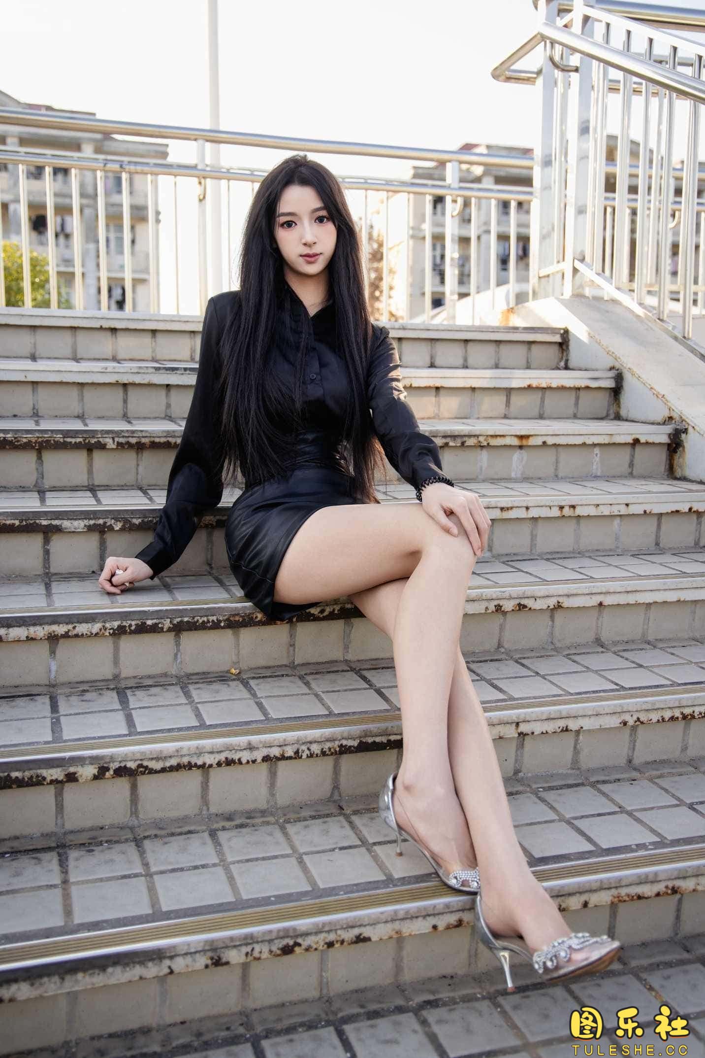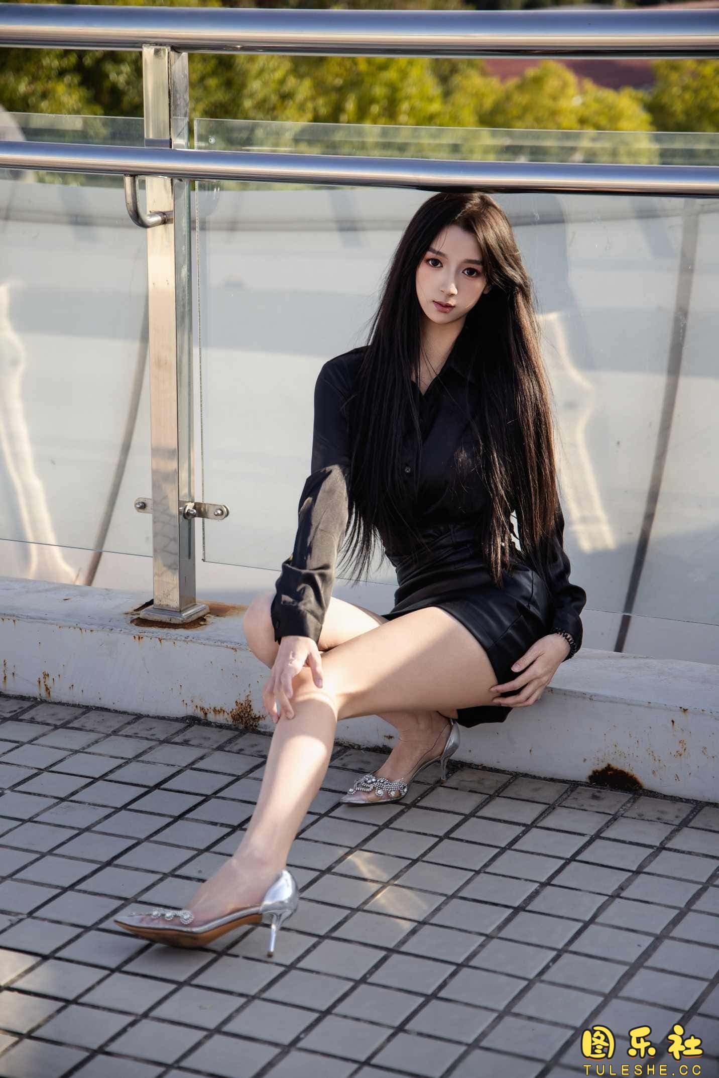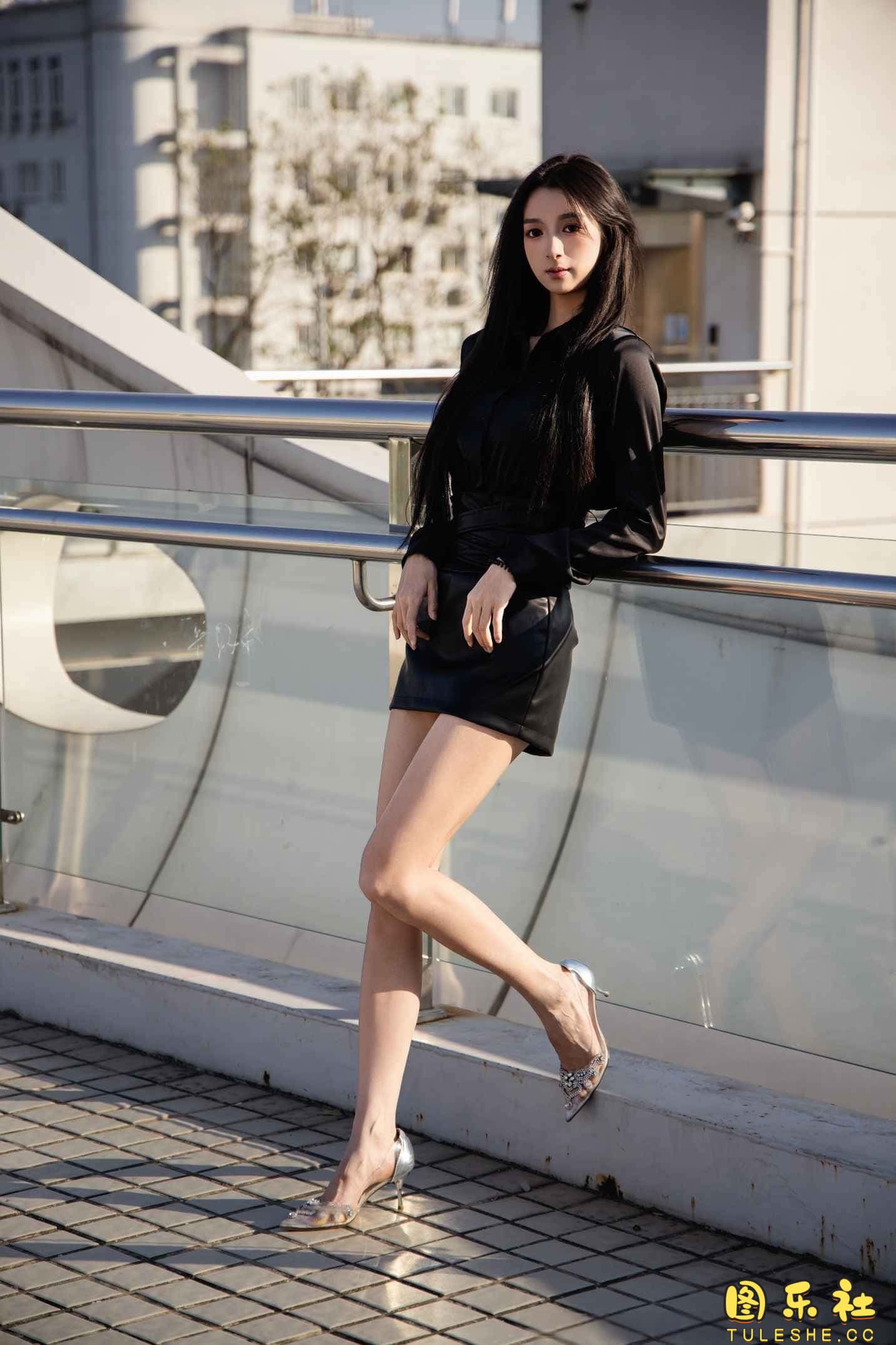 搭配:黑色衬衫、皮裙、高跟鞋、裸足